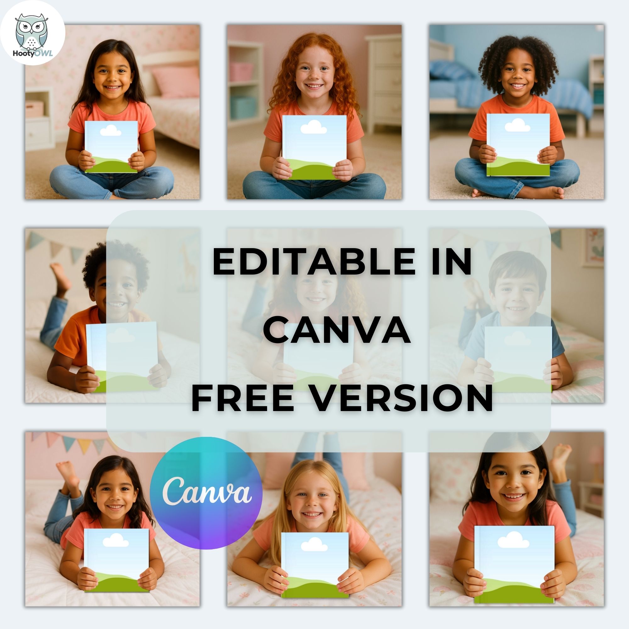 Showcase your children’s books, journals, or printable products in a professional and eye-catching way with this set of 17 square book cover mockups – made exclusively for Canva! Each template allows you to easily insert your design onto a realistic book cover scene. Perfect for digital product listings, marketing materials, or portfolio presentations. Just upload your design, drag and drop it into the mockup, and you’re ready to go!